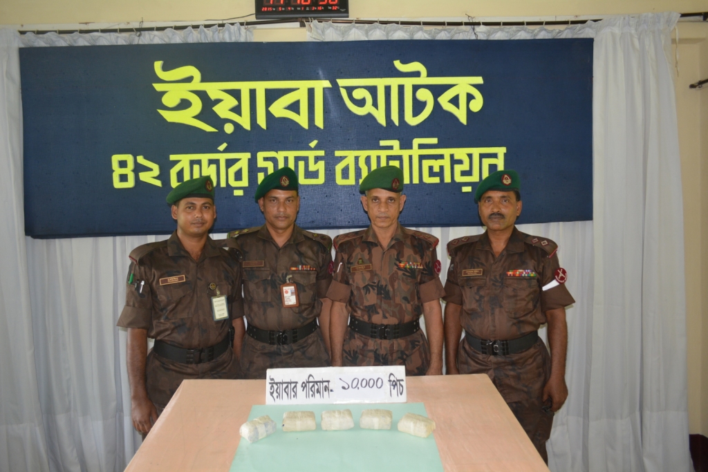 এদিকে ৪২ বিজিবি ব্যাটালিয়ন অধিনায়ক লেফটেন্যান্ট কর্নেল মো. আবু জার আল জাহিদ জানান, ইয়াবা পাচারের গোপন সংবাদের ভিত্তিতে সোমবার ভোররাতে জওয়ানরা হ্নীলা জাদিমুড়া নাফনদী এলাকায় অভিযান চালিয়ে ১০ হাজার পিস ইয়াবা উদ্ধার করে।
