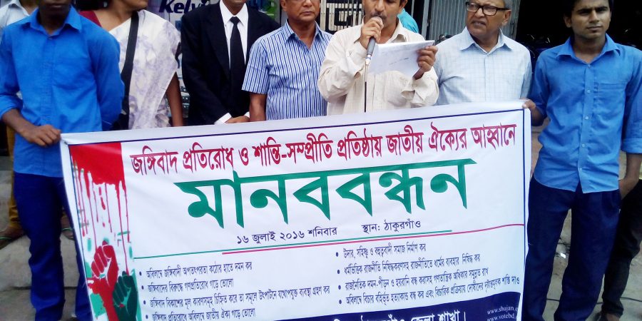 ঠাকুরগাঁওয়ে সন্ত্রাসী ও জঙ্গী হামলার প্রতিবাদে সুজনের মানববন্ধন