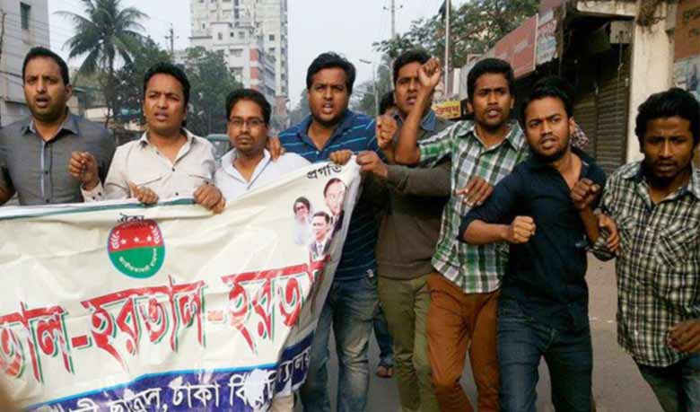 ঢাবিতে ছাত্রদলের হরতাল সমর্থনে মিছিল