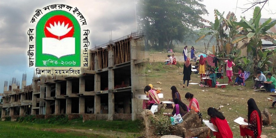 বিশ্ববিদ্যালয় সূত্রে জানা যায়, ২০০৬ সালে ময়মনসিংহ জেলার ত্রিশাল পৌর শহরের নামাপাড়ায় কবির স্মৃতিবিজরিত বটতলার কাছে ২০ একর জমিতে যাত্রা করে জাতীয় কবি কাজী নজরুল ইসলাম বিশ্ববিদ্যালয়। শুরুতে ৩৩০ জন শিক্ষার্থী নিয়ে বিশ্ববিদ্যালয়টি যাত্রা শুরু করলেও এখন ১৬টি বিভাগে শিক্ষার্থী সংখ্যা ৬০০০ হাজারের অধিক। বিশ্ববিদ্যালয়টি ৪২ একর জমিতে সম্প্রসারণ হলেও অগ্নিবীণা ও দোলনচাঁপা দুটি আবাসিক হল ছাড়া অদ্যাবধি বিশ্ববিদ্যালয়ে কোনো পুর্নাংঙ্গ হল প্রতিষ্ঠিত হয়নি।সম্প্রতি সরেজমিনে দেখা যায় দুটি হলের মধ্যে মেয়েদের জন্য একটি নতুন হল,সমাজ বিজ্ঞান অনুষদ,ব্যবসায় শিক্ষা অনুষদ এবং শিক্ষকদের জন্য ডরমেটরির কাজ চলমান আছে।