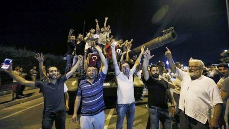 সামরিক অভ্যুথ্বানের খবর পেয়ে উপকূলীয় শহর মারমারাসিতে অবকাশে থাকা দেশটির প্রেসিডেন্ট রেসেপ তায়েপ এরদোয়ান রাজধানি ইস্তাম্বুল ছুটে আসেন। বিমানবন্দরের বাইরে প্রেসিডেন্ট টেলিফোনে একটি টেলিভিশনকে বলেন, এটি সন্ত্রাসী কাজ। এদের প্রতিহত করতে তিনি ক্ষমতাসীন জাস্টিস অ্যান্ড ডেভেলপমেন্ট দলের কর্মিসমর্থকদের রাস্তায় বেরিয়ে আসার আহ্বান জানান।