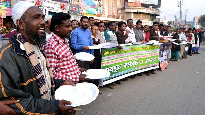 থালা হাতে অবস্থান কর্মসূচিতে শ্রমিক ও ব্যবসায়ীদের পাশাপাশি অংশ নেয় শ্রমজীবী মানুষ এবং দিনমজুররা। তারা মণিহার চত্বরে খালি থালা হাতে অবস্থান কর্মসূচিতে অংশ নেয়।