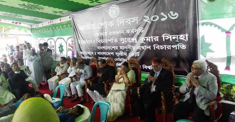 সোমবার জাতীয় শোক দিবস উপলক্ষে সুপ্রিম কোর্ট প্রশাসন কর্তৃক আয়োজিত রক্তদান কর্মসূচির উদ্বোধন ঘোষণা করে এ কথা বলেন প্রধান বিচারপতি।