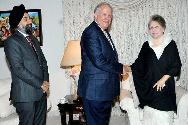 বিএনপির চেয়ারপারসন বেগম খালেদা জিয়ার সঙ্গে বৈঠক করেছেন বাংলাদেশ সফররত মার্কিন পররাষ্ট্র মন্ত্রণালয়ের রাজনৈতিক বিষয়ক আন্ডার সেক্রেটারি টমাস শেনন। বৈঠকে খালেদা জিয়া বলেছেন, তার দল গণতান্ত্রিক প্রক্রিয়ার মাধ্যমে ক্ষমতা হস্তান্তরে বিশ্বাসী। তবে নির্ভয়ে ইচ্ছা প্রকাশের সুযোগ চায় বাংলাদেশের মানুষ।