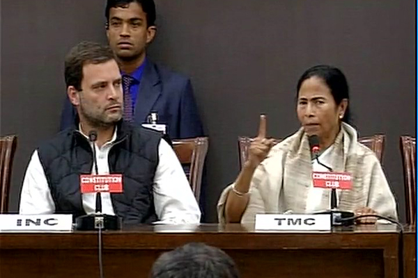 জনবিরোধী এই নীতির প্রতিবাদ করলেই তাদের ভয় দেখানো হচ্ছে বলেও অভিযোগ করেন মমতা। তিনি বলেন আজ সোনিয়া, কাল মমতা তো পরের দিন মায়াবতীকে ভয় দেখানো হচ্ছে। যৌথ সংবাদ সম্মেলনের আগে নিজেদের মধ্যে ঘরোয়া আলোচনা সেরে নেয় কংগ্রেস, তৃণমূল কংগ্রেস, আরজেডি, ডিএমকে সহ হাতে গোনা কয়েকটি রাজনৈতিক দলের নেতারা। যদিও এদিনের বৈঠকে উপস্থিত ছিল না সিপিআইএম, এনসিপিসহ বিরোধী দলগুলি। কংগ্রেসের সভাপতি সোনিয়া গান্ধী উপস্থিত থাকতে পারেন বলে শোনা গেলেও শারীরিক কারণ দেখিয়ে এদিনের যৌথ সভায় উপস্থিত থাকেন তিনি।