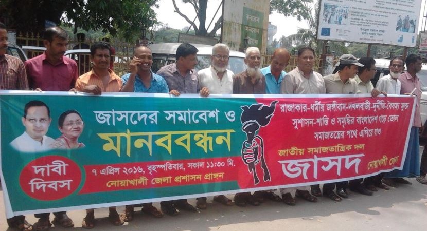 নোয়াখালীতে জাসদের মানববন্ধন ও সমাবেশ
