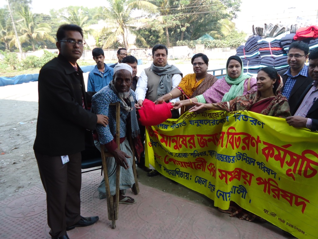 নোয়াখালীতে শীতার্তদের মাঝে কম্বল বিতরণ