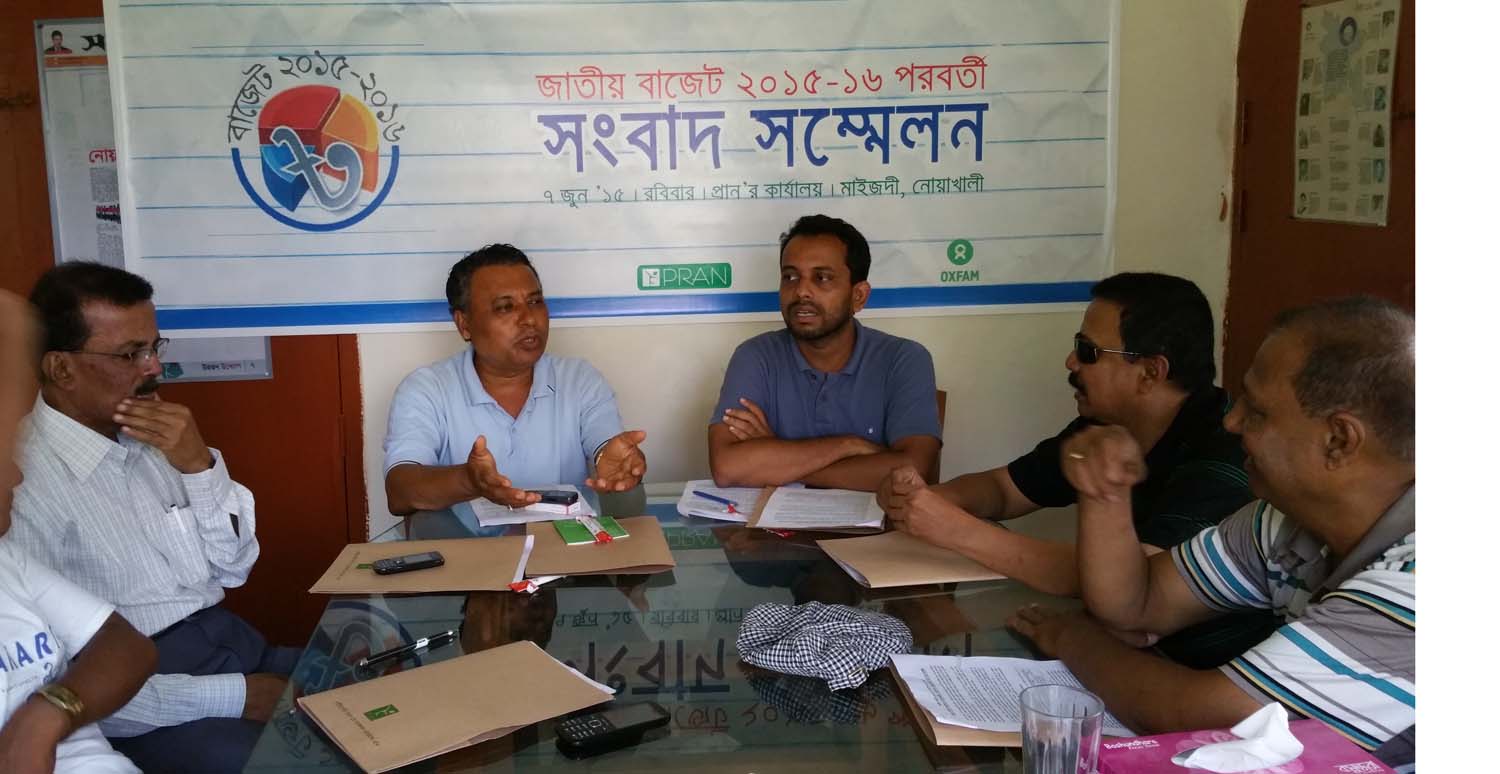 রোববার দুপুরে মাইজদী হাউজিং এস্টেটে সুশাসনের জন্য প্রচারাভিযান (সুপ্র) ও পার্টিসিপেটরি রিসার্চ অ্যাকশান নেটওয়ার্ক (প্রান) আয়োজিত জাতীয় বাজেট ২০১৪-১৫ পরবর্তী এক সংবাদ সম্মেলনে এসব কথা জানানো হয়। সুপ্র’র নোয়াখালীর সভাপতি মন গুপ্ত’র সভাপতিত্বে প্রানের সচিবালয়ে আয়োজনে সংবাদ সম্মেলনে লিখিত বাজেট বিশ্লেষণ উপস্থাপন করেন, প্রানের প্রধান নির্বাহী নুরুল আলম মাসুদ।