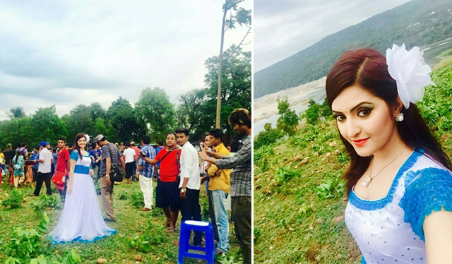 পরী মনি এখন মেঘের দেশে। সিলেটের জাফলং। মেঘ যে সেখানে অনেক নিচুতে আর আকাশ যে অনেক গম্ভির আর মুখ গোমড়া করে থাকে তা কে না জানে? হাতের কাছে মেঘ থাকলেও ছুঁয়ে দেখা যাচ্ছে না। চঞ্চল পরী মনি চাইলেও মেঘের মুখে হাসি ফোটাতে পারছেন না। তাই দুষ্টুমিতে মেতে উঠেছেন তিনি। শুটিংও থেমে থেমে চলছে বৃষ্টির জন্য।