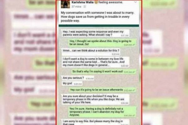 করিশ্মাকে তাঁর হবু বর বলেন, কুকুরের প্রতি তাঁর প্রেম সাময়িক হতে পারে। কিন্তু তাঁকে জীবনের গুরুত্বপূর্ণ বিষয়গুলো বুঝতে হবে। তখন করিশ্মার পাল্টা জবাব, ‘আমি আমার কুকুরকে কারও জন্য ছাড়তে পারব না। তখন তাঁর হবু বর পাল্টা বলেন, তাহলে আপনি কুকুরকেই বিয়ে করে নিন’।