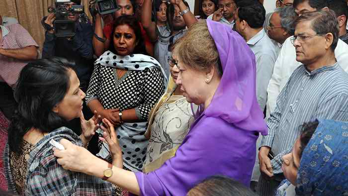 তিনি শোকাহত পরিবারের সদস্যদের সঙ্গে কিছু সময় কাটান এবং তাদের সান্ত্বনা দেন। এসময় বিএনপির ভাইস চেয়ারম্যান শমসের মবিন চৌধুরী ও খালেদা জিয়ার উপদেষ্টা সাবিউদ্দিন আহমেদ, অধ্যাপক ডা. এম এ জাহিদ হোসেন প্রমুখ উপস্থিত ছিলেন।
