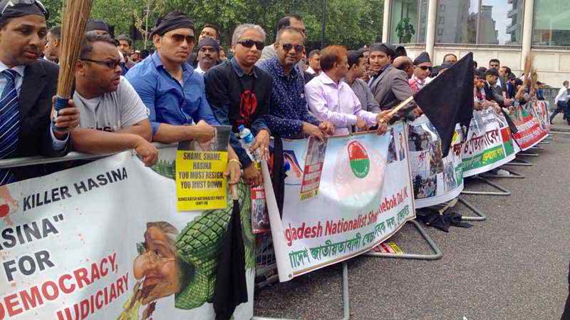 সভা শুরুর অনেক আগে থেকেই সভাস্থলের বাইরে রাস্তার বিপরীত পাশে বিক্ষোভ কর্মসূচি পালন করে যুক্তরাজ্য বিএনপি। এতে অংশ নেন বিএনপির আন্তর্জাতিক বিষয়ক সম্পাদক মাহিদুর রহমান, যুক্তরাজ্য বিএনপির সভাপতি এম এ মালেক, সাধারণ সম্পাদক কয়সর এম আহমদ, তারেক রহমানের উপদেষ্টা ব্যারিস্টার এম এ সালাম, সাবেক সহ-সভাপতি, আব্দুল হামিদ চৌধুরী আখতার হোসেন, মুজিবুর রহমান নাসিম আহমদ চৌধুরীসহ কয়েকশ’ নেতাকর্মী।