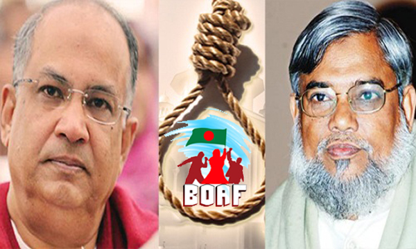 বাংলাদেশের অশুভের ছায়া, মানবতাবিরোধী অপরাধী আলী আহসান মোহাম্মদ মুজাহিদ ও সালাউদ্দিন কাদের চৌধুরীকে ফাঁসিতে ঝুলিয়ে মৃত্যুদন্ডাদেশ কার্যকর করে তাদের মরদেহ পাকিস্তানে পাঠানোর দাবি জানিয়েছে বাংলাদেশ অনলাইন অ্যাক্টিভিষ্ট ফোরাম (বোয়াফ)।