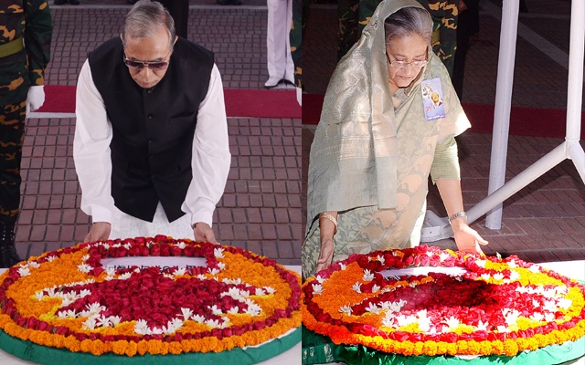 বঙ্গবন্ধুর সমাধিতে রাষ্ট্রপতি ও প্রধানমন্ত্রীর শ্রদ্ধা