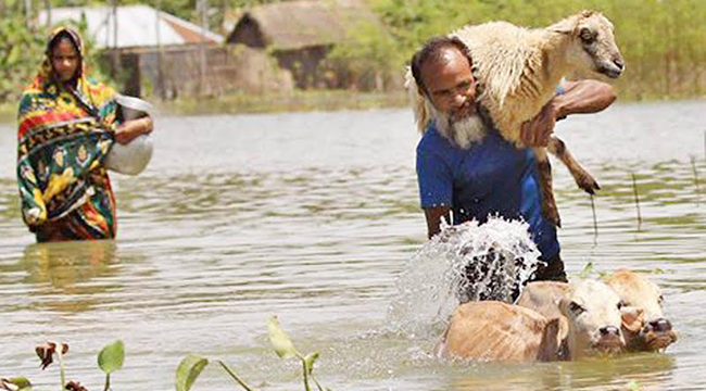 বন্যার পানি কমতে শুরু করলেও দুর্ভোগ কমেনি মানুষের