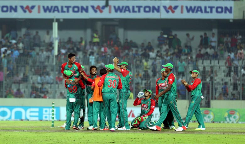 বাংলাদেশের পক্ষে মাশরাফি বিন মুর্তজা, আল-আমিন হোসেন, মুস্তাফিজুর রহমান ও অভিষিক্ত জুবায়ের হোসেন ২টি করে উইকেট নেন। এ ছাড়া নাসির হোসেন ও মাহমুদউল্লাহর ঝুলিতে জমা পড়ে একটি করে উইকেট।