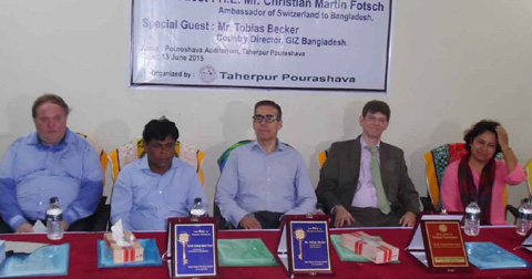 এ সময় উপস্থিত ছিলেন, জার্মানির জিআইজেডের কান্ট্রি ডিরেক্টর টোবিওস বেকার, সুইজারল্যান্ড ডেভেলপমেন্ট করপোরেশনের সিনিয়র প্রোগ্রাম অফিসার সাবিনা ইয়াসমিন, জিআইজেডের টিম লিডার হামিদুল ইসলাম চৌধুরী, পৌরসভার সচিব সিরাজুম মুনীর, প্রধান প্রকৌশলী আশরাফ উদ্দীন, সহকারী প্রকৌশলী জাহেদুল হক জাহিদ, তাহেরপুর বিশ্ববিদ্যালয় কলেজের অধ্যক্ষ তোফাজ্জল হোসেন, প্রভাষক সত্যজিৎ রায় তোতা, ডা. ইয়াছিন আলী প্রমুখ।