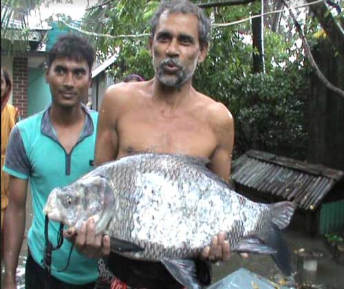 দেলোয়ার জানান, আমি পানির মধ্যে দাড়িয়ে পল্ট্রি মুরগী বিক্রি করছিলাম হঠাৎ দোকানের সামনে পানির মধ্যে একটি মাছ ফালাফালি করছিল। আমি ধরার জন্য গেলে মাছটিই আমাকে ছিটা দিয়ে চলে যাচ্ছিল, তখন আর একজনের সাহায্যে নিয়ে ঝুপি দিয়ে কুপিয়ে মাছটি ধরতে সক্ষম হই। আমার বাড়ী ঘর বৃষ্টির পানিতে তলিয়ে যাচ্ছে তারপরও মাছটি পেয়ে আমি খুব খুশি।