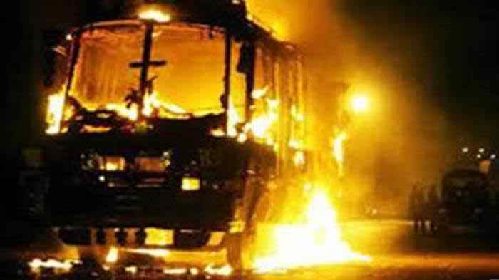 বাস থেকে যাত্রী নামিয়ে আগুন