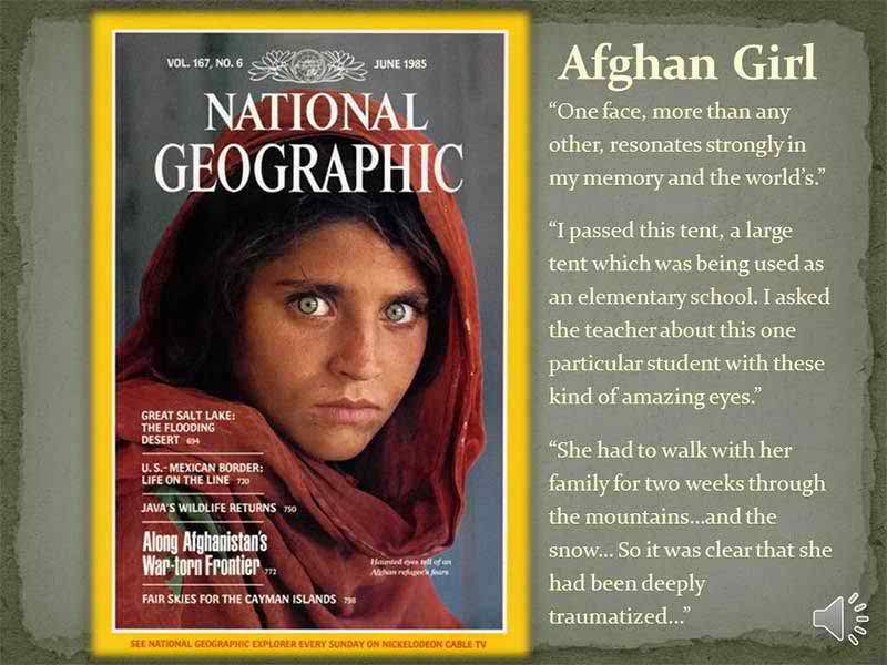 প্রায় দিন দশক আগেকার কথা। স্টিভ ম্যাকুরি নামের এক আলোকচিত্রী আফগানিস্তানের প্রত্যন্ত অঞ্চল থেকে তুলেছিলেন একজন আফগান কিশোরীর ছবি। আশ্চর্যজনকভাবে সেই আফগান কিশোরীর ছবিটি সর্বকালের সেরা আইকনিক পোট্রেট হয়ে যায়। টাইম ম্যাগাজিন থেকে শুরু করে বিশ্বের অধিকাংশ বিখ্যাত পত্রিকাই এই আলোকচিত্রটিকে অনেক মর্যাদার সঙ্গে প্রচার ও প্রকাশ করে। সেই থেকে আজ অবধি ওই ছবিটি ‘আফগান গার্ল’ নামে পরিচিতি পেয়ে আসছে।
