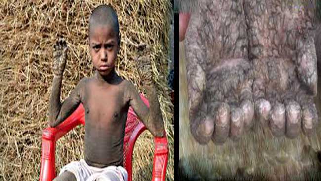 বিরল চর্ম রোগে আক্রান্ত ৯ বছরের এক শিশুকে মঙ্গলবার রাতে ঢাকা মেডিকেল কলেজ হাসপাতালে ভর্তি করা হয়েছে। তার নাম মেহেদী হাসান। সে নওগাঁ জেলার রানীনগর উপজেলার ভবানীপুর গ্রামের দরিদ্র আবুল কালাম আজাদের ছেলে। মেহেদীর দুই হাত, দুই পা এবং শরীরের বিভিন্ন স্থানে চামড়ার ওপর অসংখ্য ছোট দানা বেরিয়েছে।