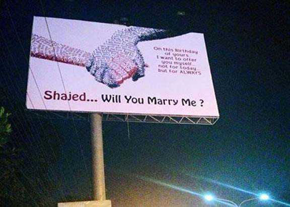 বিলবোর্ডে লেখা হয়েছে, ‘On this Birthday of yours, I offer myself. Not just for today but for ALWAYS. Shajed..Will you marry me?’