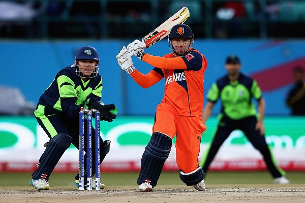 ভারতের ধর্মশালায় অনুষ্ঠিত ম্যাচে ডাচদের পক্ষে স্টিফেন মাইবার্গ ২৭, টম কুপার ০, রোয়েলফ ভ্যান ডের মারওয়ে ২, ওয়েসলে ব্যারেসি ৮, পিটার বোরেন ১৪ ও মুদাসসার বুখারি ০* রান করেন। আর আইরিশদের পক্ষে জর্জ ডকরেল ৩টি উইকেট নেন।