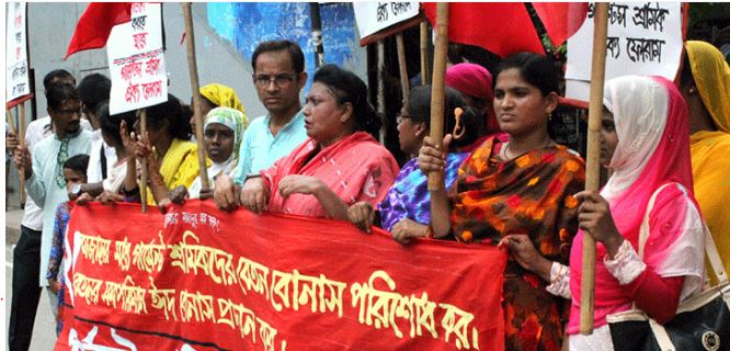 আসন্ন ঈদুল ফিতরকে সামনে রেখে গার্মেন্টস শ্রমিকদের বেতন-ভাতা ২০ রোজার মধ্যে পরিশোধ এবং বেতনের সমপরিমাণ ঈদ বোনাসের দাবি জানিয়ে বিক্ষোভ সমাবেশ করেছে গার্মেন্টস শ্রমিক ঐক্য ফোরাম।