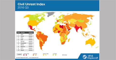ব্যবসা ঝুঁকিতে থাকা দেশগুলোর একটি তালিকা প্রকাশ করেছে ভেরিস্ক মেপলিক্রফট। ওই তালিকা অনুযায়ী ব্যবসা ঝুঁকিতে থাকা শীর্ষ দেশগুলো হচ্ছে-
