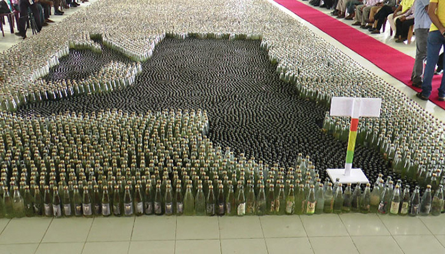 মদ-ফেনসিডিলের বোতল দিয়ে বাংলাদেশের মানচিত্র!