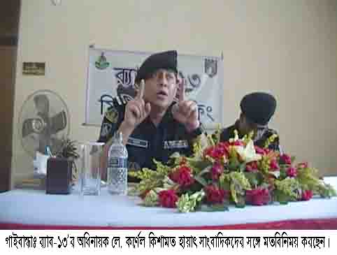 গাইবান্ধায় মাদক নিয়ন্ত্রণে জিরো টলারেন্সে কাজ করার ঘোষণা দিয়েছেন র্যাব-১৩ (রংপুর)’র অধিনায়ক লে. কিশমত হায়াৎ।