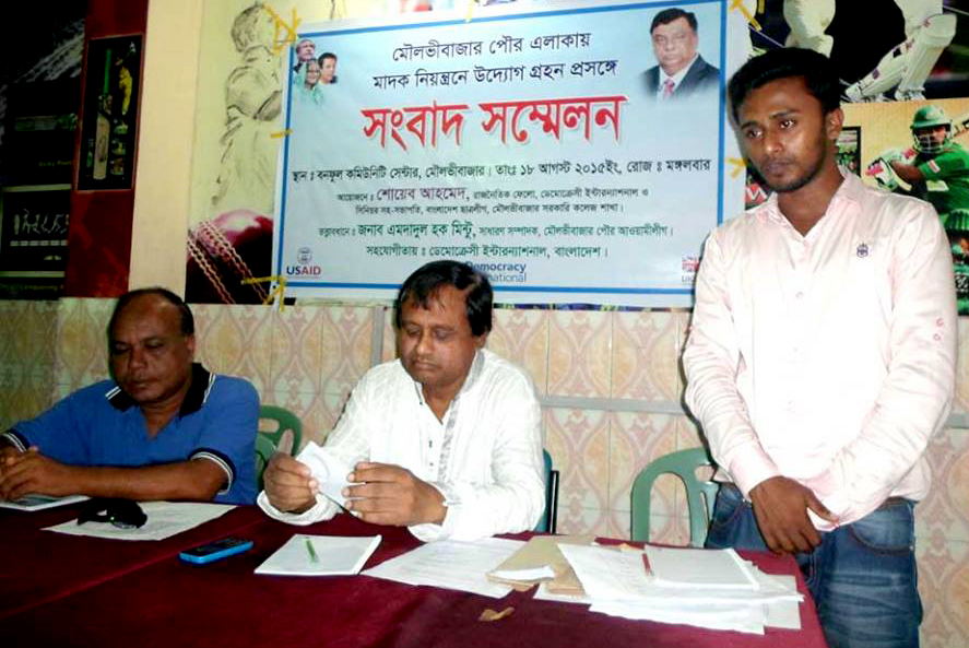 মৌলভীবাজার পৌর শহরে মাদক নিয়ন্ত্রনে ডেমক্রেসি ইন্টারন্যাশনাল মৌলভীবাজার জেলার উদ্যোগে গতকাল বুধবার শহরের বনফুল কমিউনিটি সেন্টারে সংবাদ সম্মেলন অনুষ্টিত হয়।