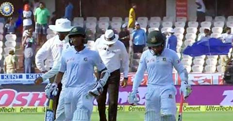 মুমিনুলের বিদায়ের পর সাকিবের সঙ্গে ৪৫ রানের জুটি গড়ে এলবিডব্লিউর শিকার হন মাহমুদউল্লাহ রিয়াদও। ইশান্ত শর্মার ভেতরে আসা বলে পায়ে লাগলে আউট হন তিনি। যদিও রিভিউ নিয়েছিলেন তিনি। তবে তাতে শেষ রক্ষা হয়নি। এরপর সাকিবকে সঙ্গ দিতে উইকেটে আসেন মুশফিকুর রহীম। দেশসেরা এ দুই ব্যাটসম্যানের ব্যাটিংয়ে ওয়েলিংটন টেস্টের কথাই মনে করিয়ে দিচ্ছিল।