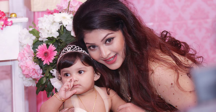 বুধবার রাত ৮টায় মেয়েকে নিয়ে কেক কাটেন সারিকা ও তার স্বামী ব্যবসায়ী মাহিম করিম।