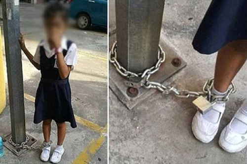 রাস্তার পাশে ল্যাম্প পোস্টের পাশে দাঁড়িয়ে কাঁদছে ৮ বছরের একটি মেয়ে। নড়তে চড়তে পারছে না। কেননা পা শিকলে বাঁধা পোস্টের সঙ্গে। পথচারীরা দেখে চমকে উঠেছেন। শিকল খোলার চেষ্টা করেছেন অনেকে। কিন্তু তালা দিয়ে বন্ধ শিকল খোলা সম্ভব হয়নি। এমনকি নিরূপায় হয়ে দাঁড়িয়ে থাকতে হয়েছে পুলিশকেও।