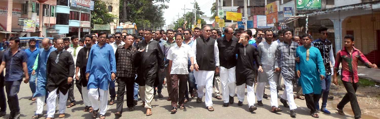 অপর দিকে জেলা আওয়ামীলীগের সভাপতি সাবেক চীফ হুইপ উপ্যাধক্ষ আব্দুস শহীদের নেতৃত্বে বেলা ১১টায় চৌমুহনী চত্বর থেকে র্যালি বাহির করে শহরের প্রধান প্রধান সড়ক প্রদিক্ষণ করে পৌর জনমিলন কেন্দ্রে আলোচনা সভায় মিলিত হয়। এ সময় উপস্থিত ছিলেন জেলা আওয়ামীলীগের সভাপতি উপ্যাধক্ষ আব্দুস শহীদ, সাধারণ সম্পাদক নেছার আহমদ, জেলা যুবলীগের সভাপতি ফজলুর রহমান ফজলুসহ যুবলীগ, ছাত্রলীগ, সেচ্ছাসেবক লীগ, তরুণলীগের বিভিন্ন পর্যায়ের নেতৃবৃন্দ।