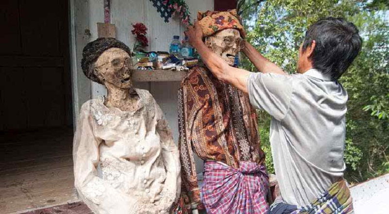 দেশটির দক্ষিণ সুলাওয়েসির তোরাজা গ্রামের রীতি হলো, প্রতিবছর মৃত স্বজনদের কবর থেকে তুলে মরদেহ পরিষ্কার করা।
