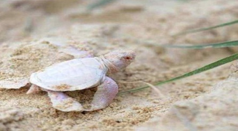 ছোট আকৃতির সাদা রঙের এই কচ্ছপটি কুইন্সল্যান্ড সানশাইন উপকূলের কাস্টঅ্যাওয়ে বিচে একটি সবুজ কচ্ছপের বাসা থেকে পাওয়া গেছে।