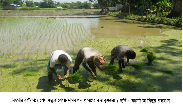 রাণীনগরে শেষ মহূর্তে রোপা-আমন ধান লাগানোর ধুম