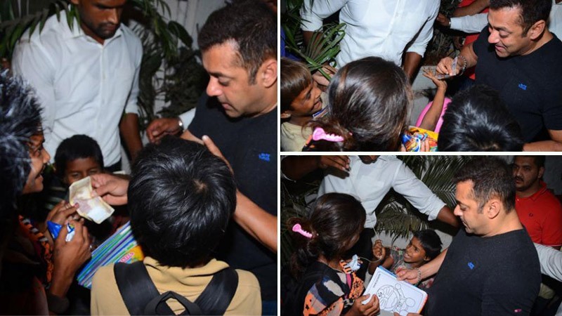 না, এগুলো সালমান খানকে দেয়ার জন্য নয়। এগুলো যে তারা রাস্তার মানুষের কাছে বিক্রি করে অন্ন যোগায়। সালমান গাড়ি থেকে নেমে এলেন সেইসব অসহায় পথশিশুদের কাছে। বেশখানিক সময়ও কাটালেন। কিনলেন ছেলে-মেয়েদের হাতে থাকা রঙিন বইপত্র, বেলুন। সবাইকে ডেকে এনে কথাও বললেন। কাউকে দিলেন পাঁচশো রুপি, আবার কাউকে বা এক হাজার রুপি!