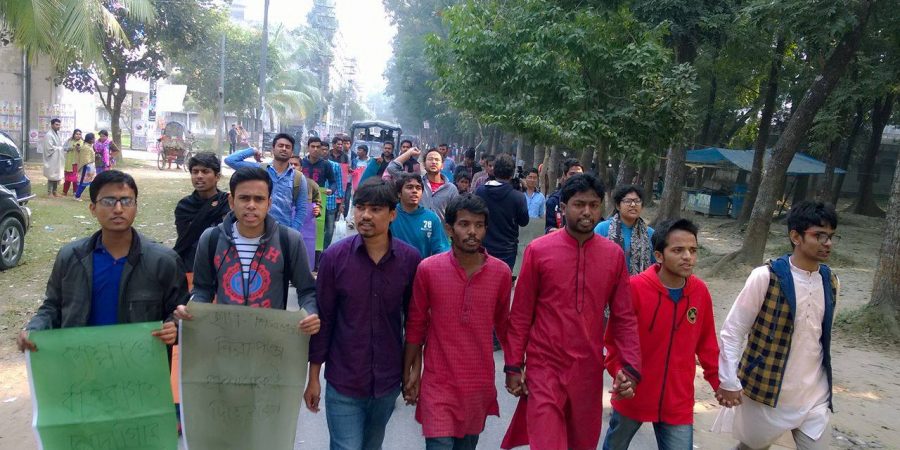 বিক্ষোভ মিছিলটি ক্যাম্পাসের প্রধান ফটকের সামনে থেকে শুরু হয়ে ক্যাম্পাসের প্রধান সড়কগুলো প্রদক্ষিণ করে পুনরায় সেখানে সংক্ষিপ্ত সমাবেশে মিলিত হয়।