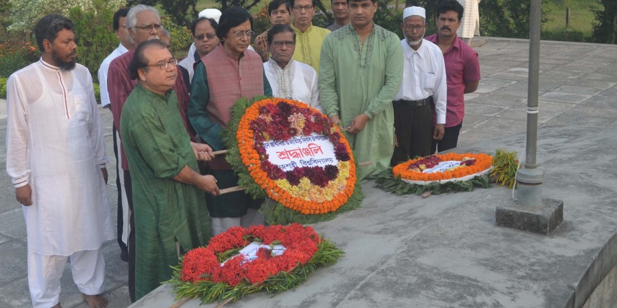 ভোরে সূর্যোদয়ের সাথে সাথে ক্যাম্পাসের ভবনসমূহে জাতীয় পতাকা উত্তোলন করা হয়। সকাল সাড়ে ৬টায় বিভিন্ন আবাসিক হল, ইনস্টিটিউট, বিভাগ, অন্যান্য পেশাজীবী সংগঠনের পক্ষ থেকে প্রভাত ফেরী ও শহীদ মিনারে পুষ্পস্তবক অর্পণ করা হয়।