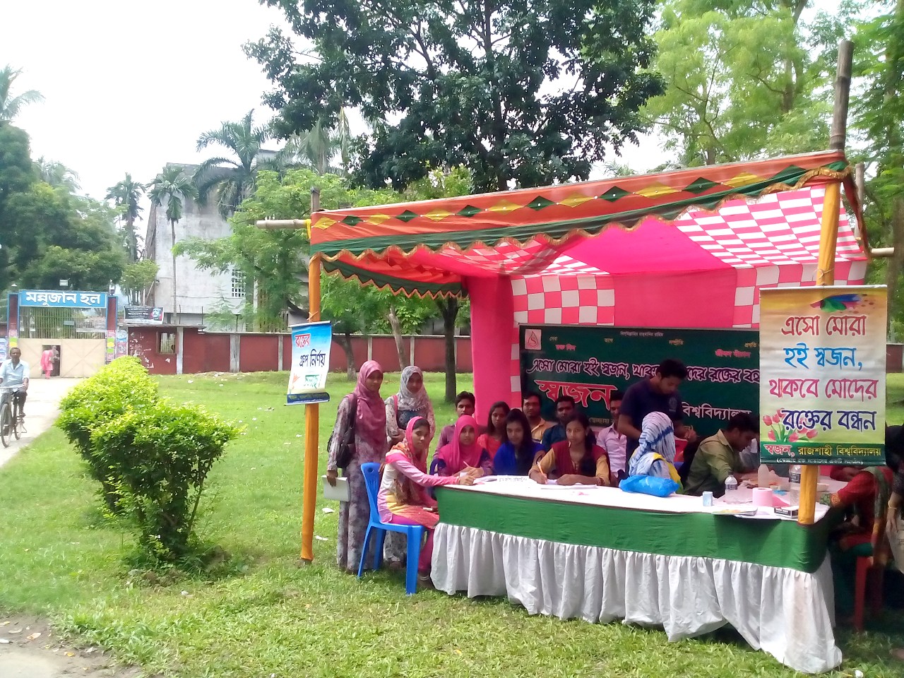 রাজশাহী বিশ্ববিদ্যালয়ের (রাবি) স্বেচ্ছায় রক্তদাতাদের সংগঠন ‘স্বজন’ এর উদ্যোগে মুন্নুজান হলের সামনে ‘ফ্রি ব্লাড গ্রুপিং ক্যাম্পেইন’অনুষ্ঠিত হয়েছে। বুধবার সকাল নয়টা থেকে দুপুর দুইটা পর্যন্ত ¯^জনের আয়োজনে হলের সামনে এ কর্মসূচি পালন করা হয়।
