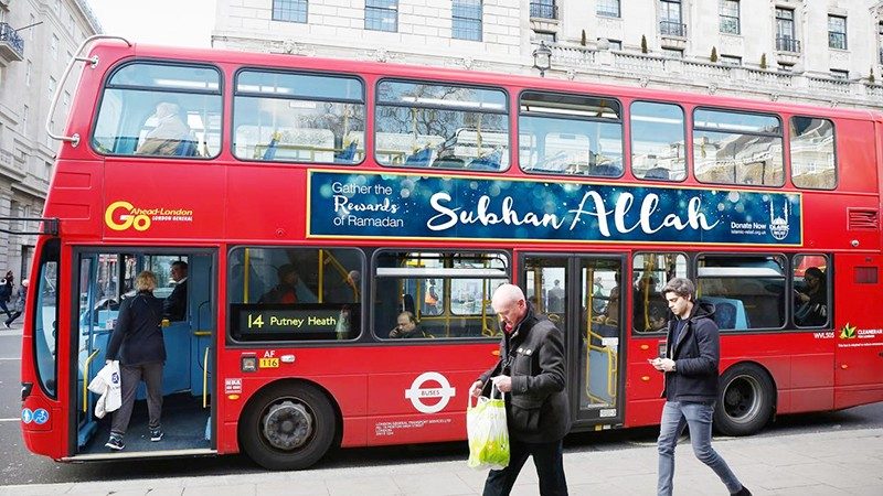 লন্ডনের রাস্তায় সুবহানাল্লাহ লেখা বাস
