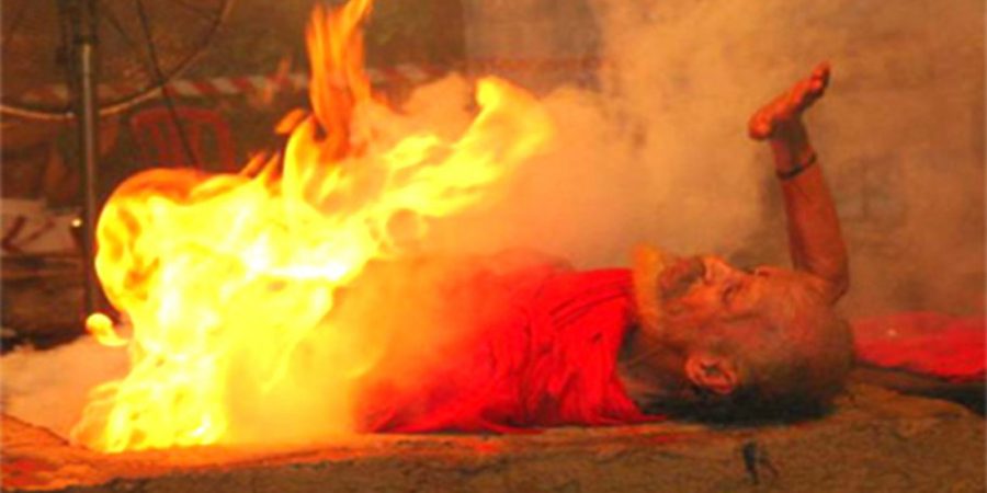 শান্তি পাওয়ার আশায় সারাগায়ে আগুন লাগিয়ে সাধনা করছেন এই ৬৩ বছরের সন্ন্যাসী