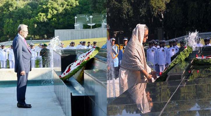 সোমবার সকাল ৮টার দিকে তারা শিখা অনির্বাণে ফুল দিয়ে শ্রদ্ধা নিবেদন করেন। প্রথমে রাষ্ট্রপতি মো. আবদুল হামিদ সকাল ৮টায় শ্রদ্ধা নিবেদন করেন। এরপর সকাল সোয়া ৮টায় প্রধানমন্ত্রী শেখ হাসিনা শ্রদ্ধা জানান।