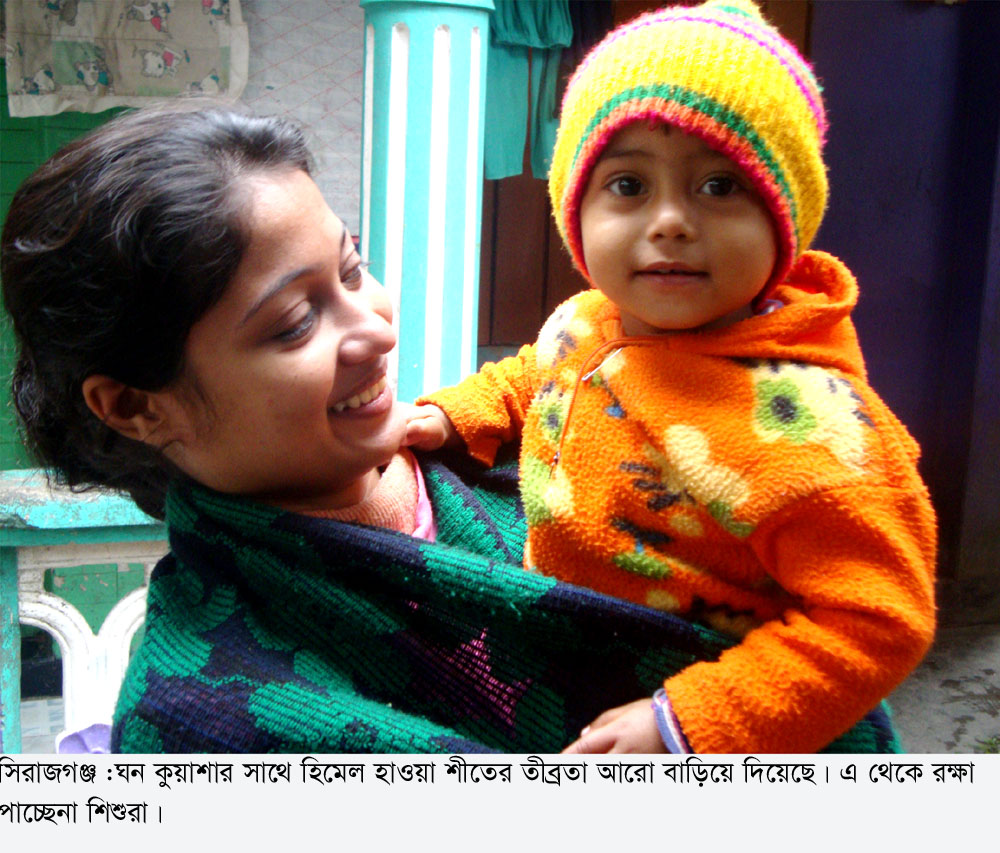 জেলা ও উপজেলা স্বাস্থ্য কমপ্লেক্সে শীতে অসুস্থতা জানিত রোগীর সংখ্যা বৃদ্ধি পাচ্ছে। শীত বস্ত্রের অভাবে সিরাজগঞ্জ সহ উত্তরাঞ্চলের প্রায় ৩০ লাখ দরিদ্র মানুষ বিপাকে পড়েছেন। সরকারী ভাবে এখন পর্যন্ত শীতার্ত মানুষের মাঝে কোন শীতবস্ত্র বিতরন করা হয়নি। শীত বস্ত্রের অভাবে আগুর জ্বালিয়ে রাত কাটাচ্ছে মানুষ। ঘন কুয়ার কারনে রাস্তা ঘাট ও নদী পথে যান বাহন এবং নৌ চলাচলে বিপত্তি ঘটছে। জেলা ও উপজেলা গুলোতে লোকজনের আগমন কমে গেছে। বিশেষ করে চরাঞ্চলের হত দরিদ্র মানুষ বিপাকে পড়েছেন আরো বেশি। খড় কুটোতে আগুন জ্বালিয়ে শীত নিবারনের চেষ্টা করছেন তারা। সন্ধ্যা শুরু হতে না হতেই কুয়াশা চাদরে ঢেকে পড়ে পুরো উত্তরাঞ্চল। এ কারনে যানবাহনের যাত্রীদের গন্তোব্যে পৌঁছতে সময় লাগছে অনেক সময় লাগছে।