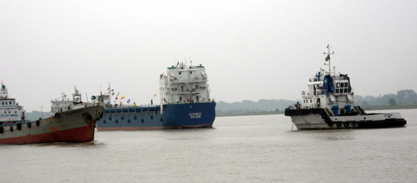 জানা গেছে, দেশের মেগা প্রকল্প পদ্মা সেতু নির্মাণের ৫৩ হাজার টন পাথর নিয়ে বাংলাদেশের জলসীমানায় (হীরন পয়েন্টে) চীনা জাহাজ এমভি ফরচুন বার্ড অপেক্ষা করছে। রামনাবাদ চ্যানেলের বহির্নোঙর থেকে পণ্য খালাস করার জন্য এমভি পেয়ারা-৬, এমভি ফেকু মিয়া, এম ভি সৈনিক-৫, এম ভি নিউটেক-২, এমভি নিউটেক-৬, এম ভি মেরিন-৫, এম ভি মেরিন-৮, এম ভি টাইগার অব ইস্ট বেঙ্গল-৭, কেএসএল প্রাইড এবং কেএসএল গ্লাডিয়েটরসহ ১২টি লাইটার এবং ইন্টারন্যাশনাল সারভাইভাল জাহাজ জেটি থেকে গভীর সমুদ্রের উদ্দেশে রওনা করে রবিবার দুপুর আড়াইটার দিকে। জাহাজগুলো সাগরে কিছুদূর অগ্রসর হলেও প্রচণ্ড ঢেউ থাকায় পোর্ট টার্মিনালে ফিরে আসে বলে জানায় বন্দর কর্তৃপক্ষ।