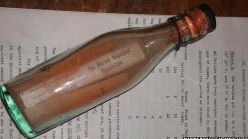 সাগরে ভেসে আসা বোতলে পাওয়া গেছে শতবছরের পুরনো চিঠি। বোতলটি ১০৮ বছর ৪ মাস ১৮ দিন সাগরে ভেসে অবশেষে তীরে পৌঁছে দিয়েছে চিঠি। লাইভসাইন্স ডটকমের খবরে জানানো হয়েছে এই তথ্য।