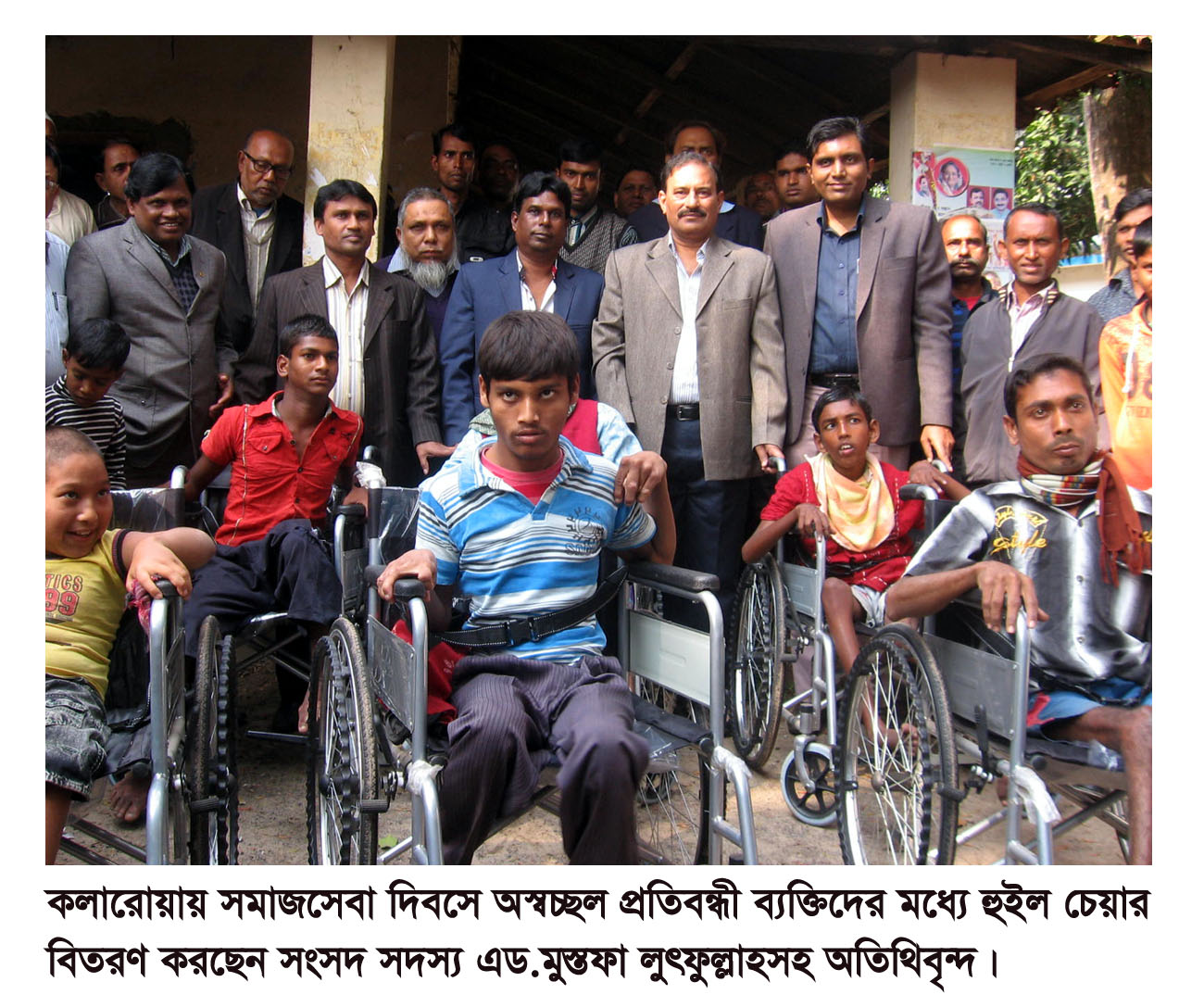 সাতক্ষীরার কলারোয়ায় সমাজসেবা দিবসে অস্বচ্ছল প্রতিবন্ধী ব্যক্তিদের মধ্যে হুইল চেয়ার বিতরণ
